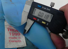 Au début des années 90, quelqu’un qui travaillait chez un fabricant de toile du Québec, se souvient que leurs toiles avec motifs avaient 18 millièmes et que les toiles bleues avaient 16 millièmes.