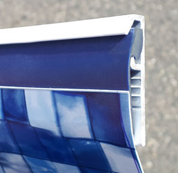 Bead standard ou régulier. Toile faite pour être accrochée dans une bordure appelée: retenue de toile. C'est généralement le système des piscines en bois ou semi-creusée. |