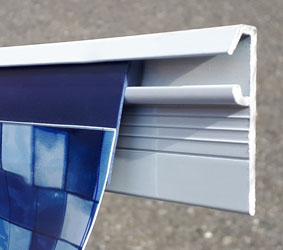 Bead creusée. Toile faite pour être accrochée dans une bordure appelée: retenue de toile. C'est généralement le système des piscines en bois ou semi-creusée. |